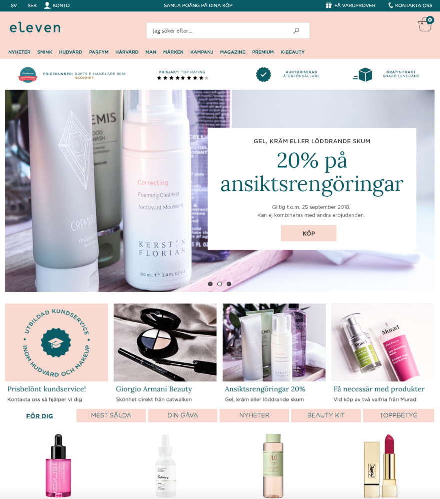 Skönhetsbutiken Eleven gör en rejäl makeover och byter logga. Det innebär även att företaget ger sin signumfärg, alltså rosa, "ett litet lyft". Den nya signumfärgen är också en rosa nyans, men har enligt Eleven "en mer modern och elegant framtoning".
