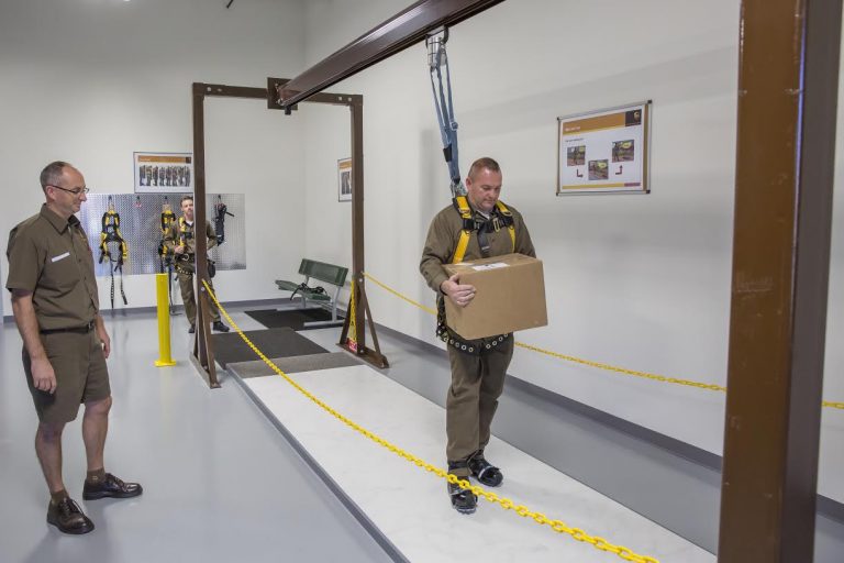 UPS medarbetare hålls i koppel på hal is
