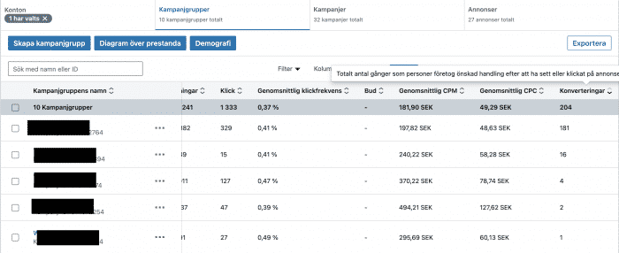 När taggen är installerad kan du dels skapa de konverteringar du vill att Linkedin ska optimera mot, och dels börja skapa retargeting målgrupper. Du behöver dock ha minst 300 besökare som Linkedin kan matcha mot.