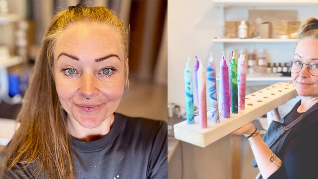 Idag handdoppar de sina stearinljus i lekfulla färgkombinationer och tillverkar doftljus helt från grunden på sojavax. Webbshoppen lanserades den 1 juni i år, men vägen dit var inte kort.