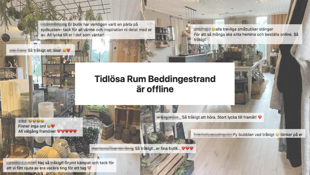 För bara tre år sedan startade en svärdotter och svärmor sin gemensamma dröm: inredningsbutiken Tidlösa Rum. Nu har drömmen tagit slut. Bolaget bakom den fysiska butiken i Beddingestrand och tillhörande e-handel har försatts i konkurs, efter en period med vikande omsättning och förlustresultat.