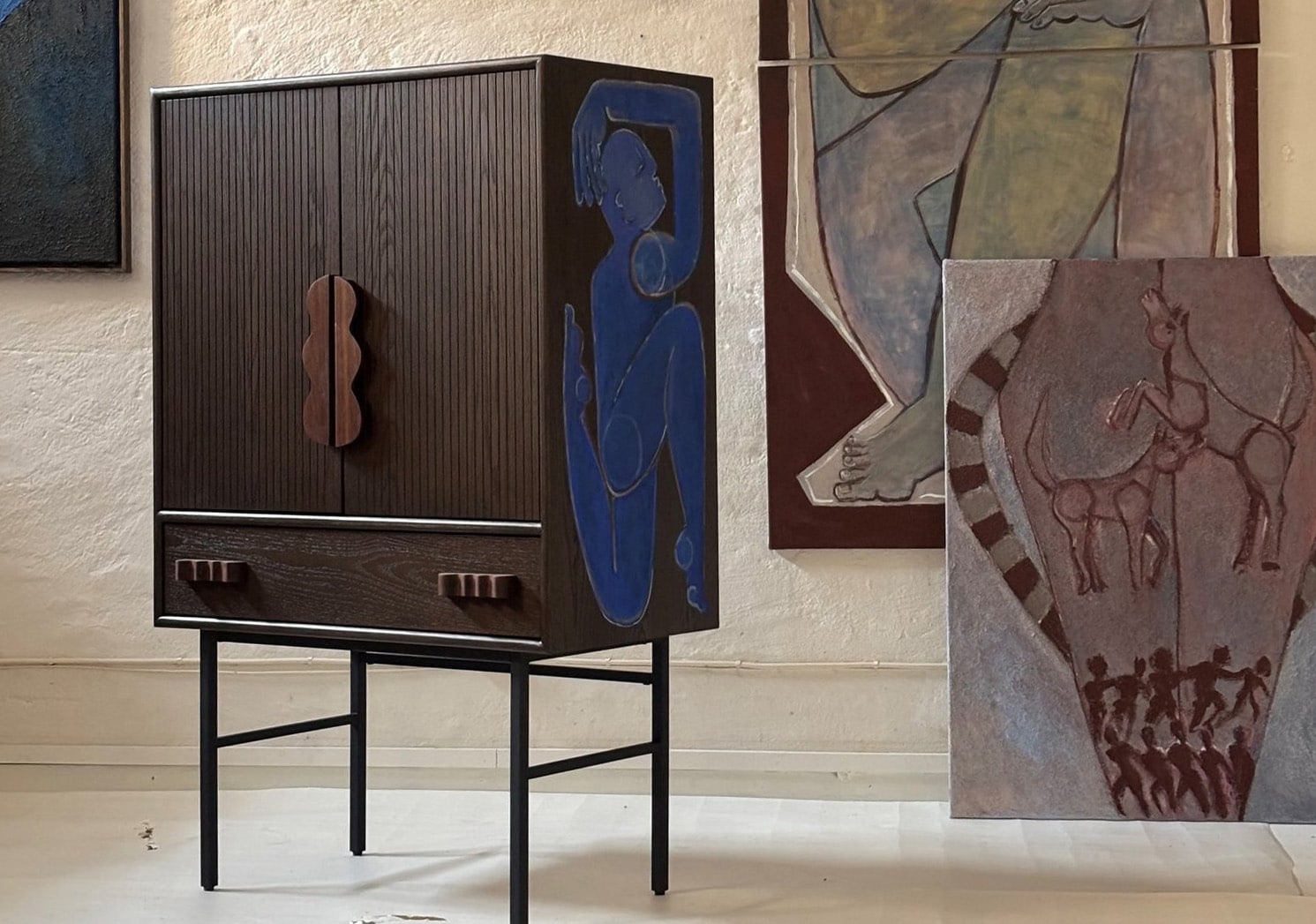 Resultatet blev ett unikt samarbete med konstnären Josefin Tolstoy. Ett Clearbrook-skåp från Rowico Home levererades till hennes ateljé i Uppsala för att förvandlas till ett konstverk.