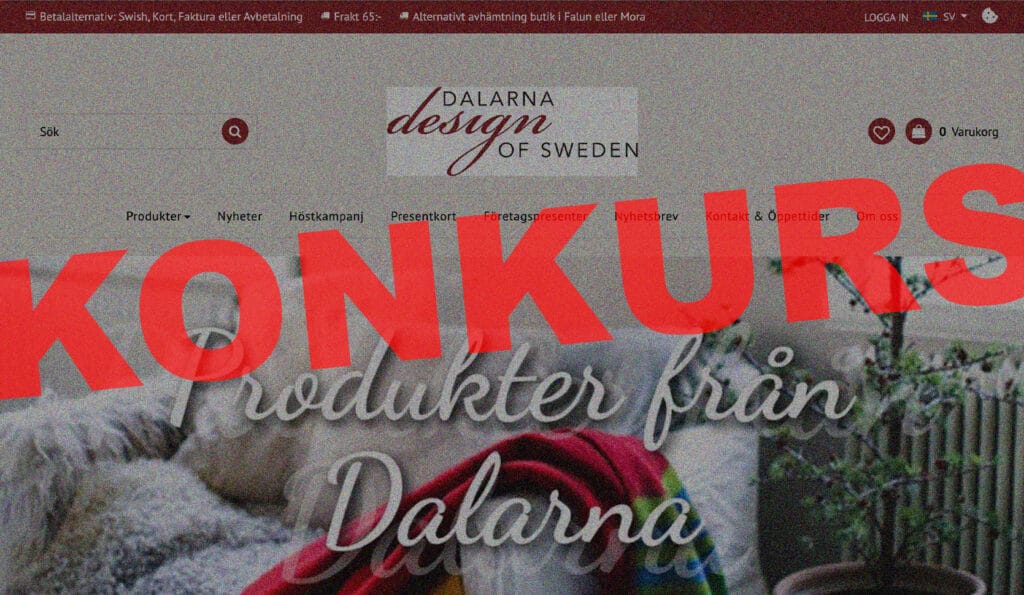 E-handlaren Dalarna Design of Sweden AB begärs i konkurs av Skatteverket. Det skriver Falukuriren. Företaget har samlat på sig obetalda skulder, stängt ned sin nätbutik och fått in många anmälningar från köpare som blivit utan leverans.