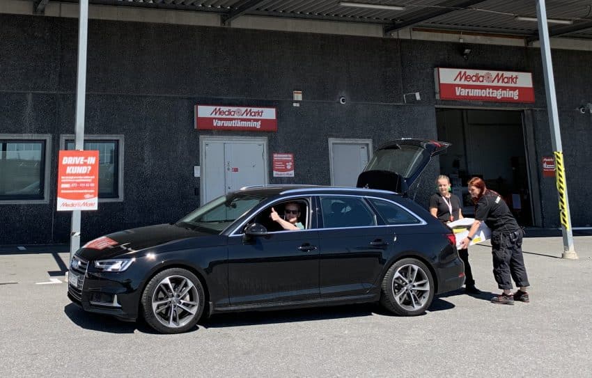 Kunder som väljer drive-in-leverans får ett telefonnummer i sin orderbekräftelse. När hon eller han ringer numret kommer någon i personalen ut med paketet. Enligt Media Markt är det inte omöjligt att satsningen blir kvar även efter att pandemin har avtagit.