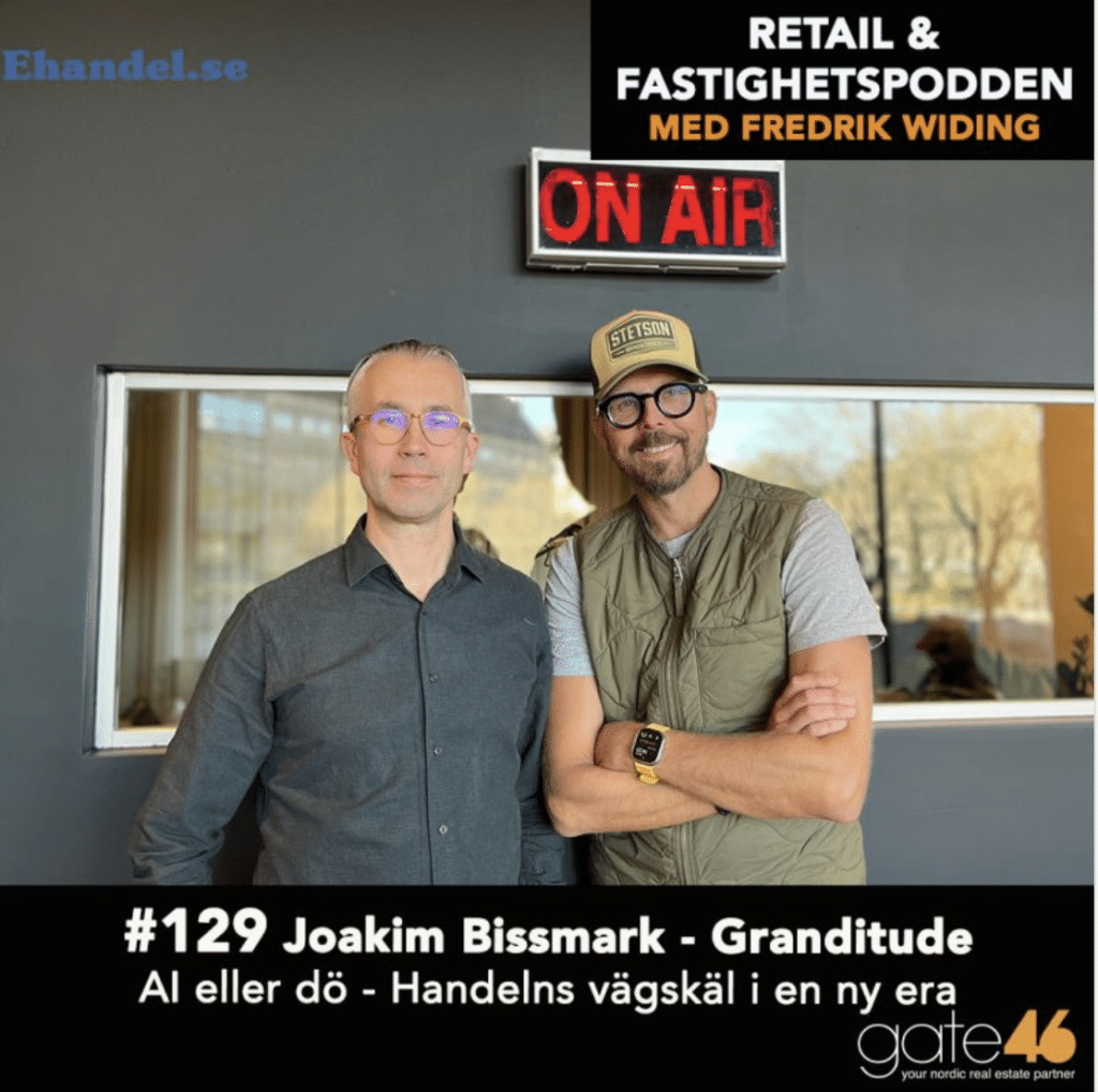 I dagens avsnitt gästas vi av Joakim Bissmark, vd och medgrundare av Granditude, som delar sin syn på hur AI omformar handeln. Vi diskuterar digitala assistenter som revolutionerar köpresan, smartare sätt att förstå och möta kundernas behov och varför vissa företag kommer att blomstra – medan andra riskerar att slukas av utvecklingen.
