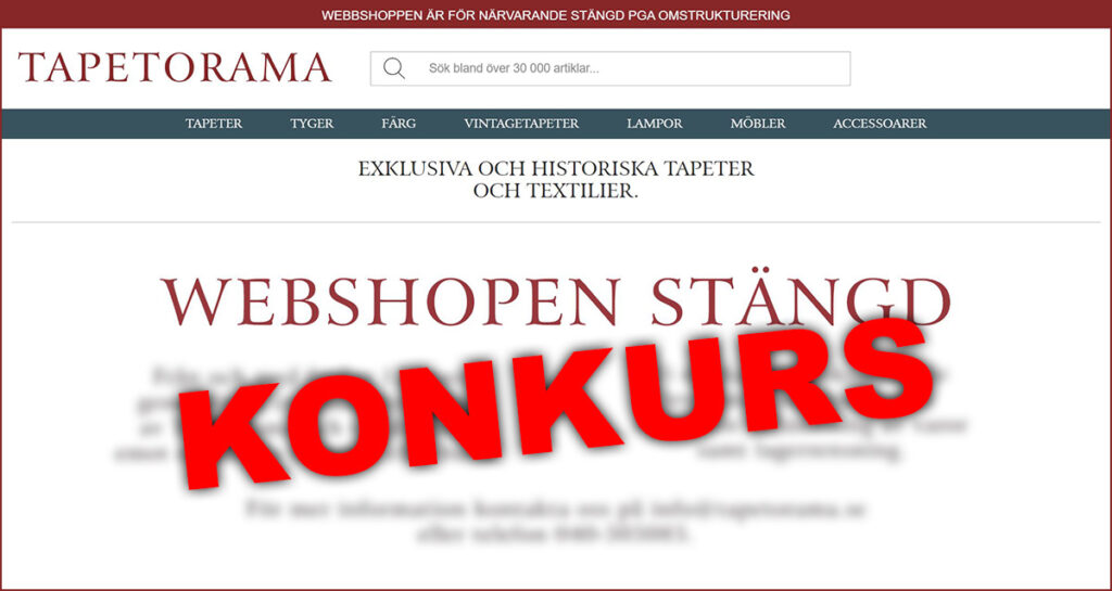 Nätbutiken Tapetorama.se startades redan 2001 och har alltså länge försett marknaden med ett brett utbud av tapeter. Sedan i förra veckan har dock webbshoppen haft stängt med följande meddelande: